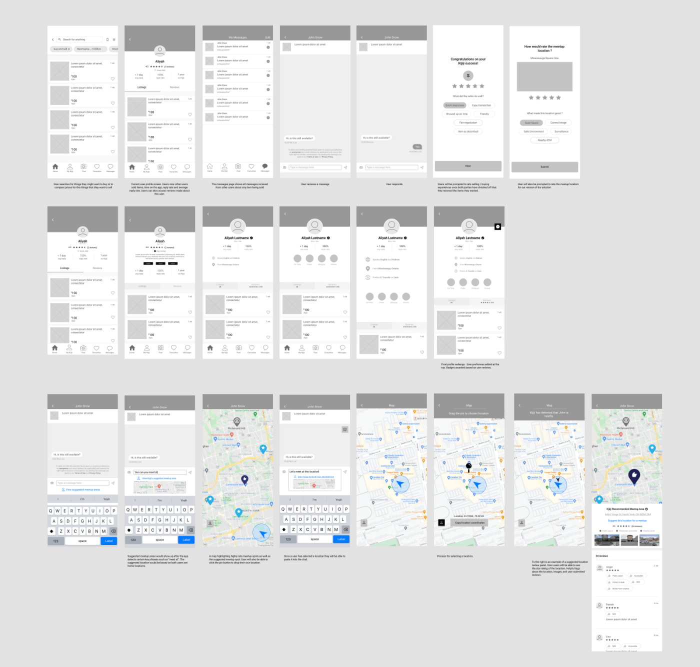 Our goal with our prototype was to implement our new features seamlessly into Kijiji’s existing design guidelines. Through our wireframes, we designed, tested and iterated 22 screens overtime.