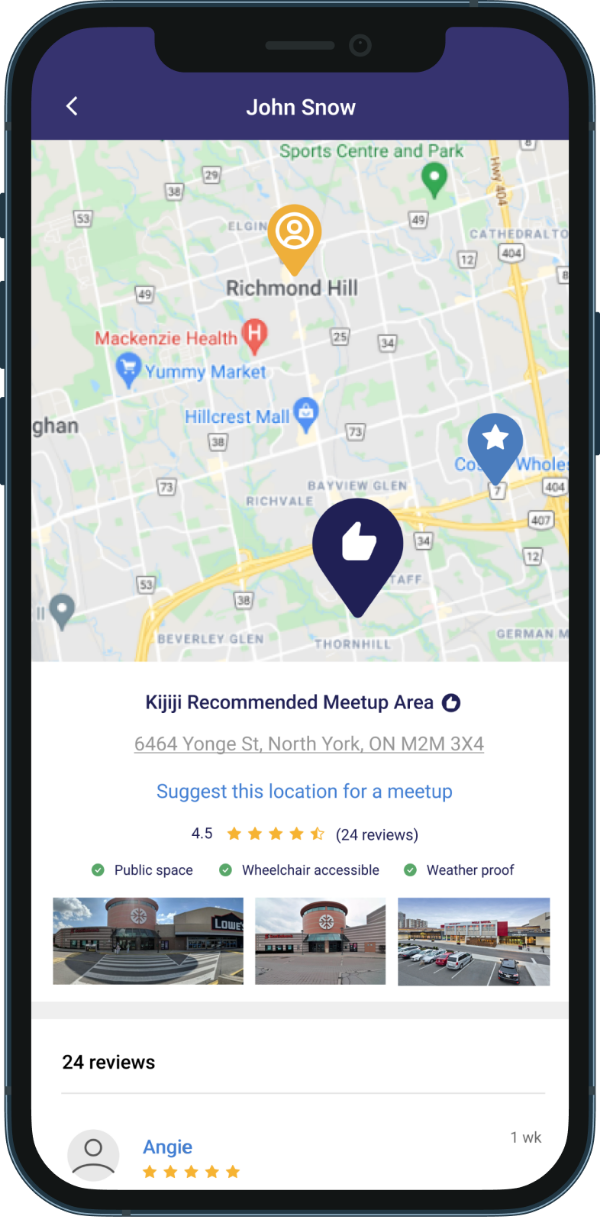 Users help to verify, rate, and recommend select meetup locations highlighting accessibility, safety, and nearby amenities.