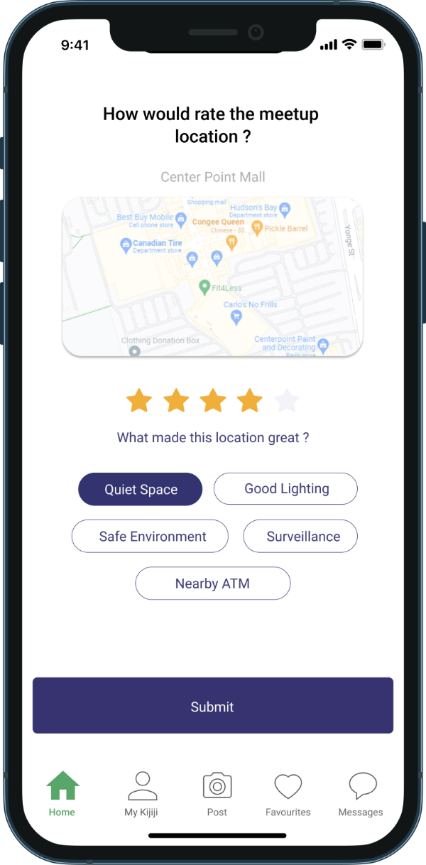 After testing and finalizing our wireframe prototype, we developed high fidelity mockups by applying Kijiji’s branding, ensuring that all new additions fit well into Kijiji’s existing brand guidelines.