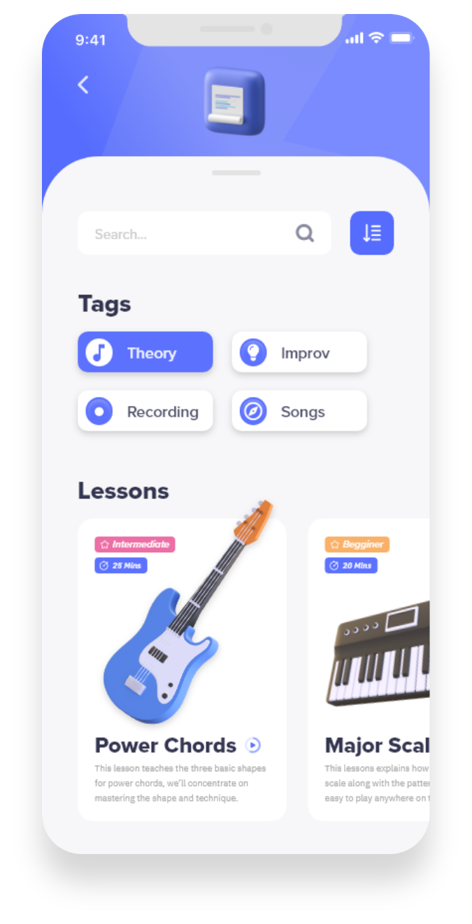 Lessons catered to user interest and development are suggested to users in the search section